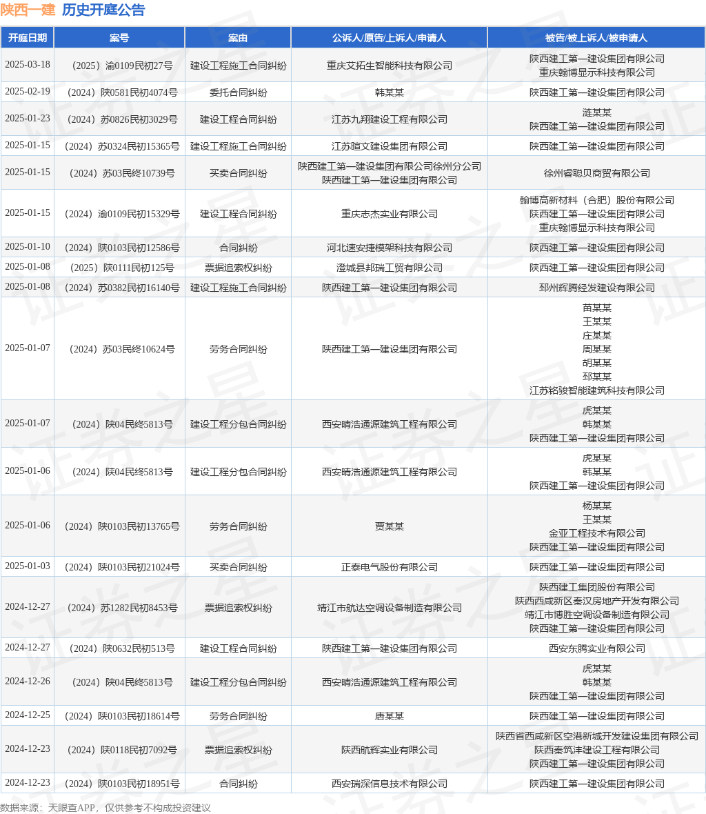 本站消息,根据天眼查APP显示,近日公布了一则陕西建工第一建设集团有限公司作为被告/被上诉人的开庭公告,详细内容如下: